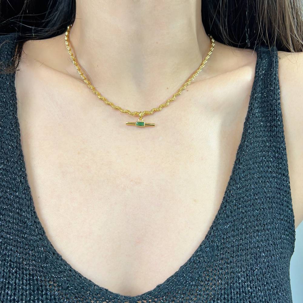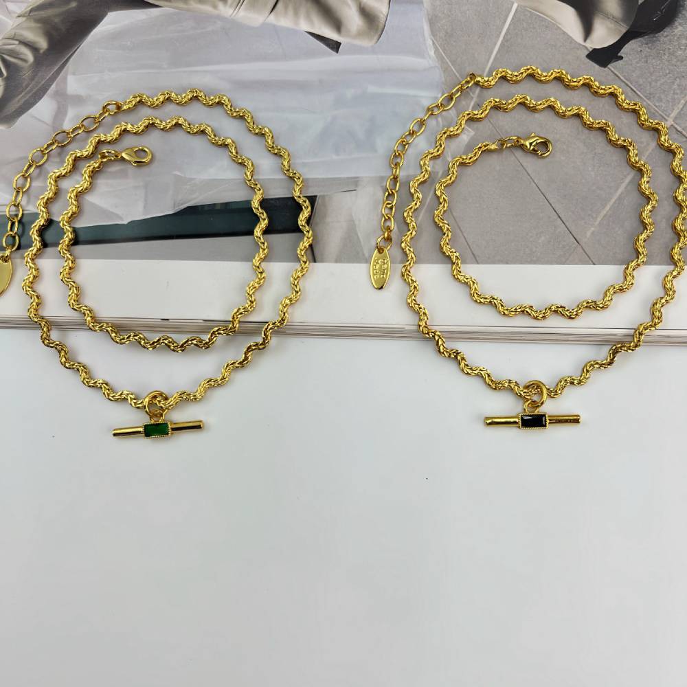 Εκπληκτικό κολιέ για όλες τις περιστάσεις φοριέται από το πρωί στο γραφείο έως το βράδυ στην έξοδό σας και αναδεικνύει υπέροχα τα outfit σας. Η αλυσίδα είναι από επιχρυσωμένο ορείχαλκο διακοσμημένη μαύρο ή πράσινο ζιργκόν.