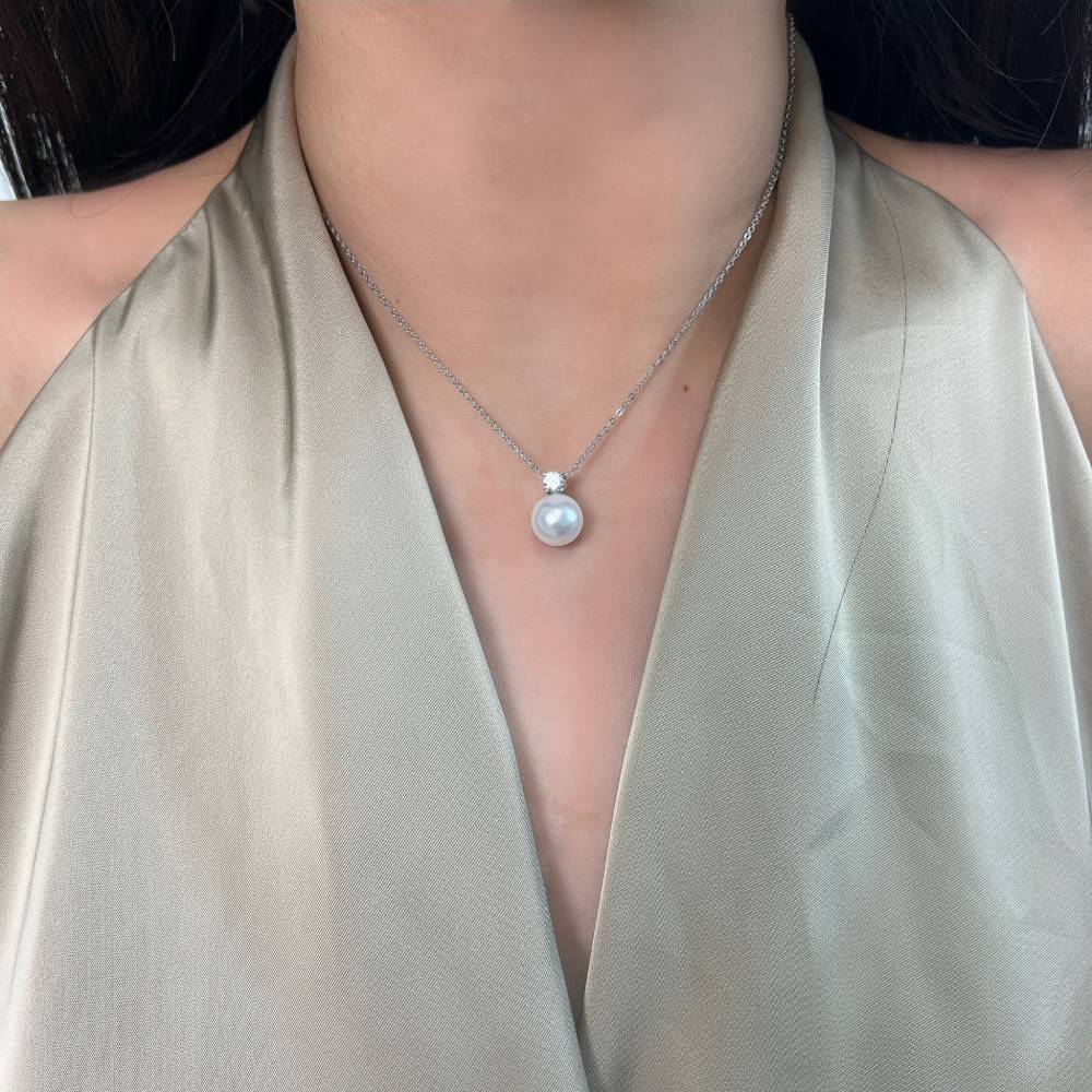Το κολιέ αλυσίδα από ασήμι με κρεμαστό μαργαριτάρι και ζιργκόν είναι μια εκπληκτική επιλογή. Είναι διακοσμημένο ζιργκόν που του δίνουν λάμψη ενώ το ασήμι το καθιστά κομψό και ανθεκτικό.