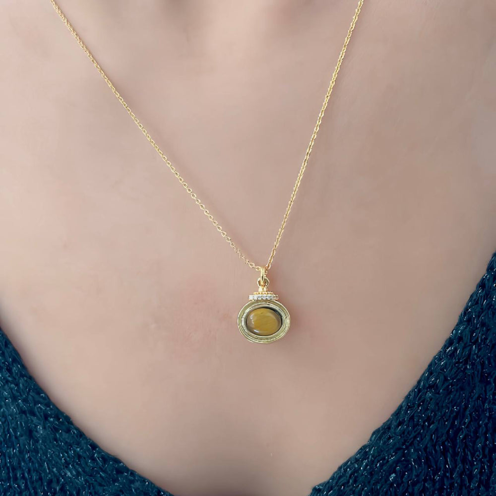 Κολιέ ορείχαλκου επιχρυσωμένου με φυσική πέτρα.
