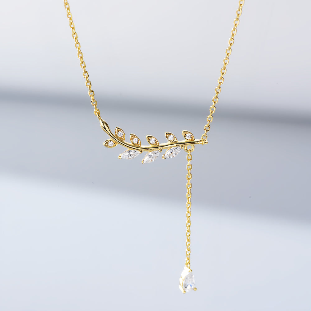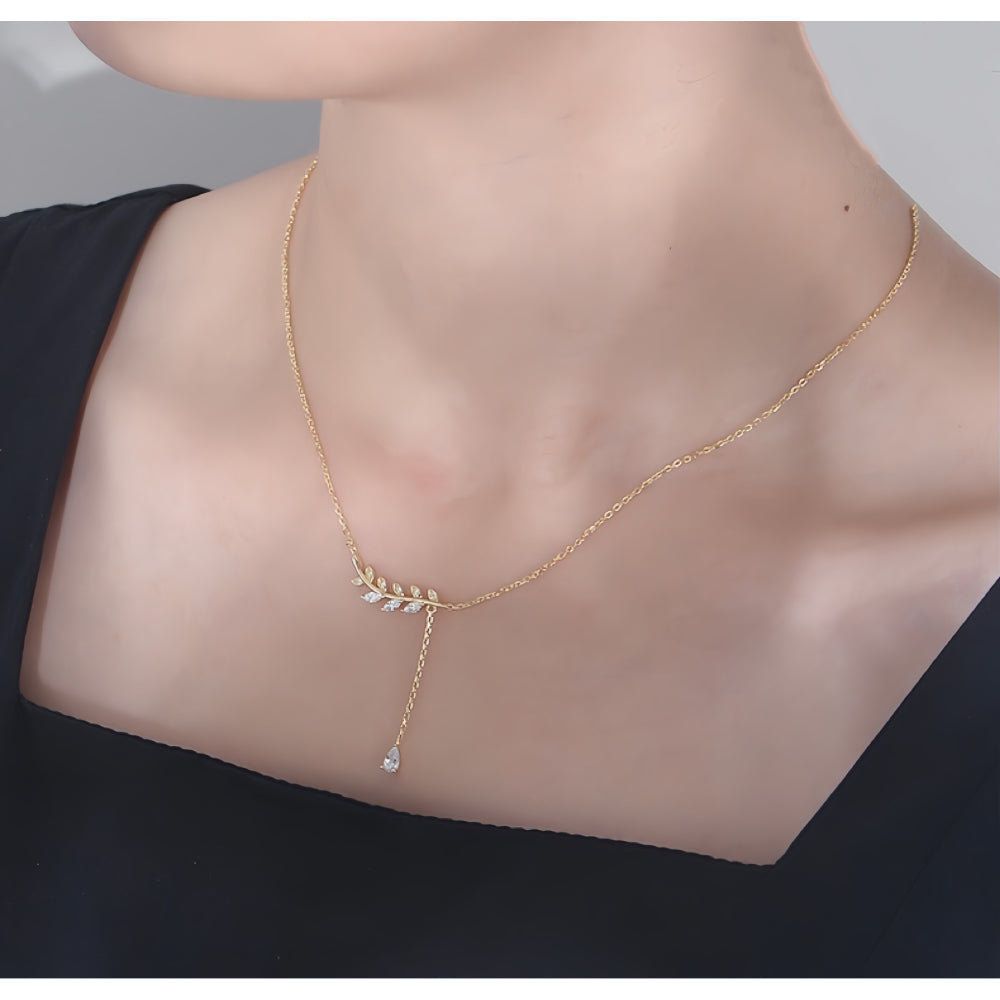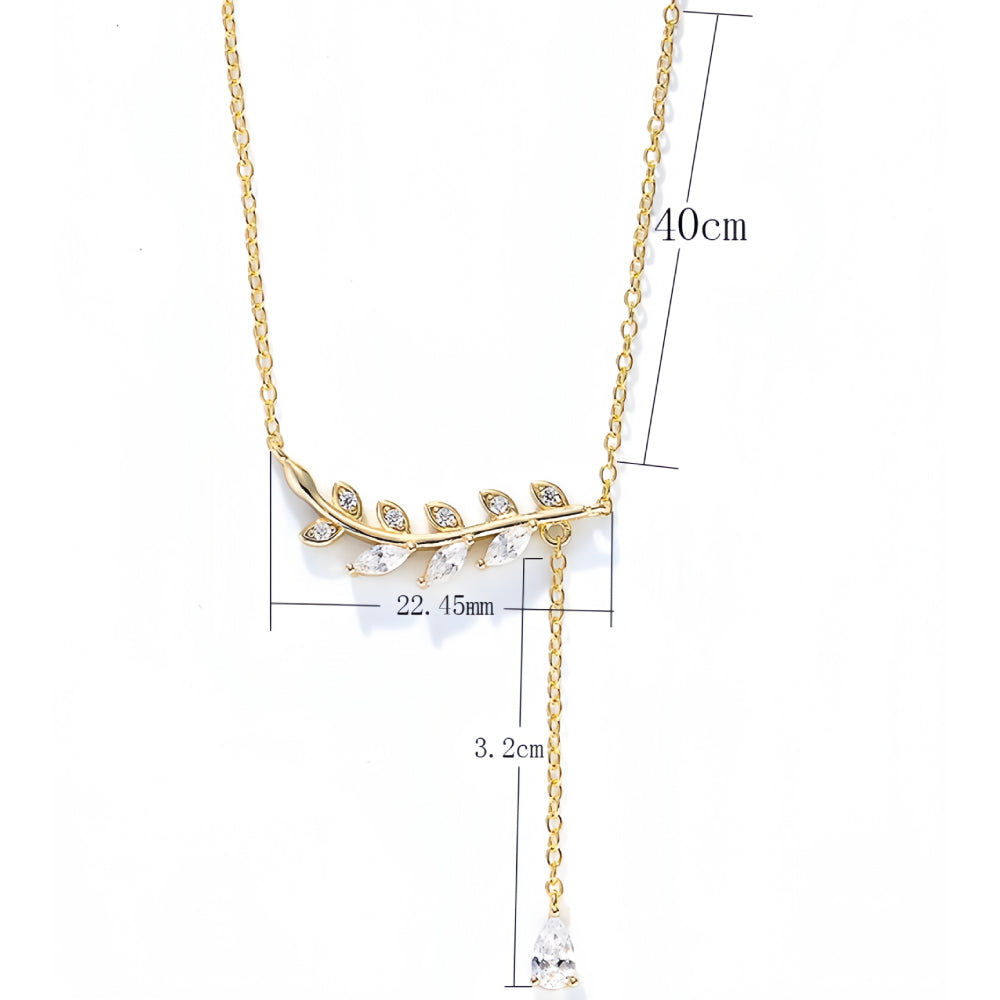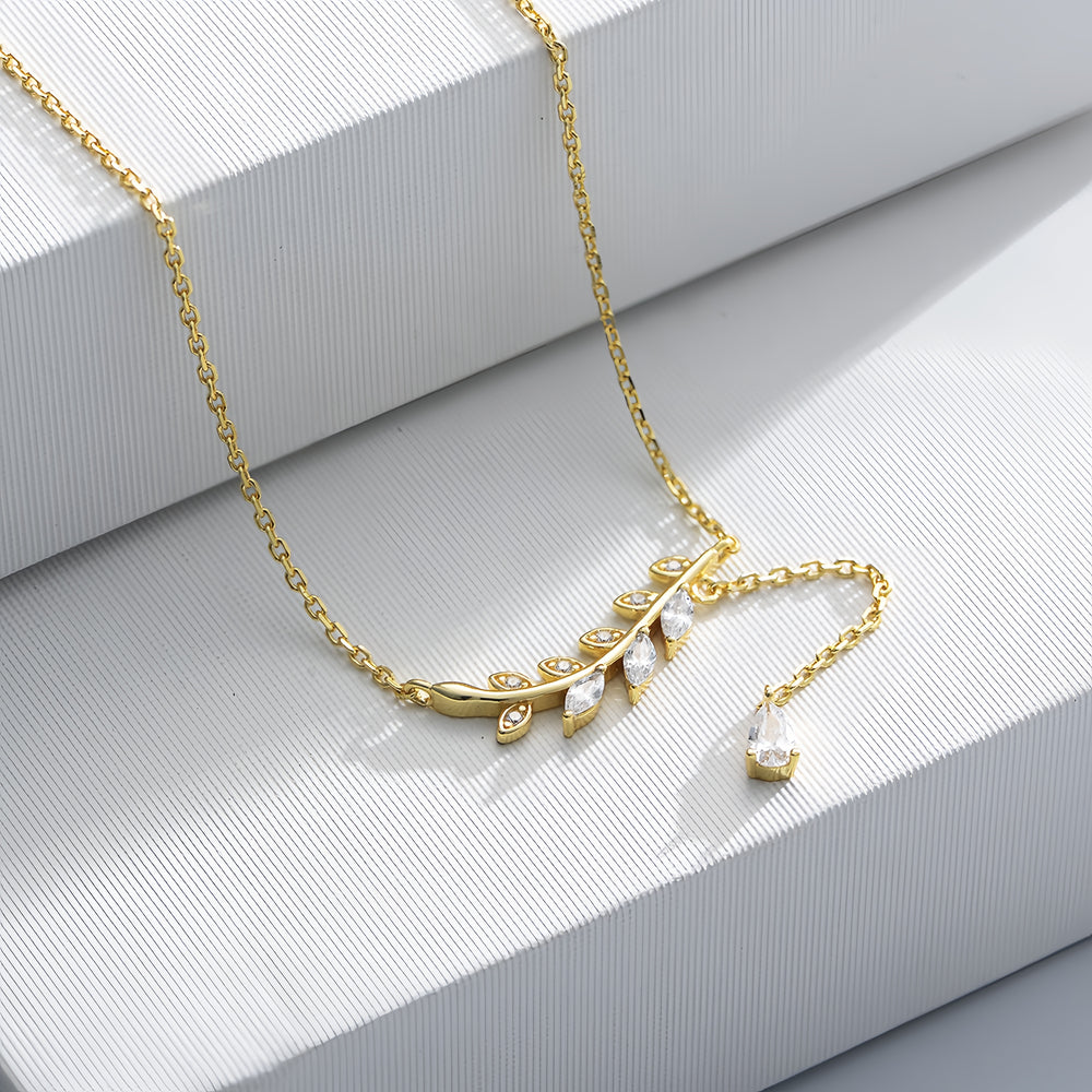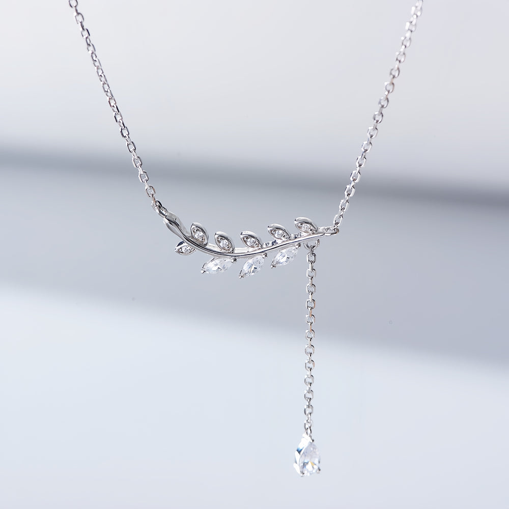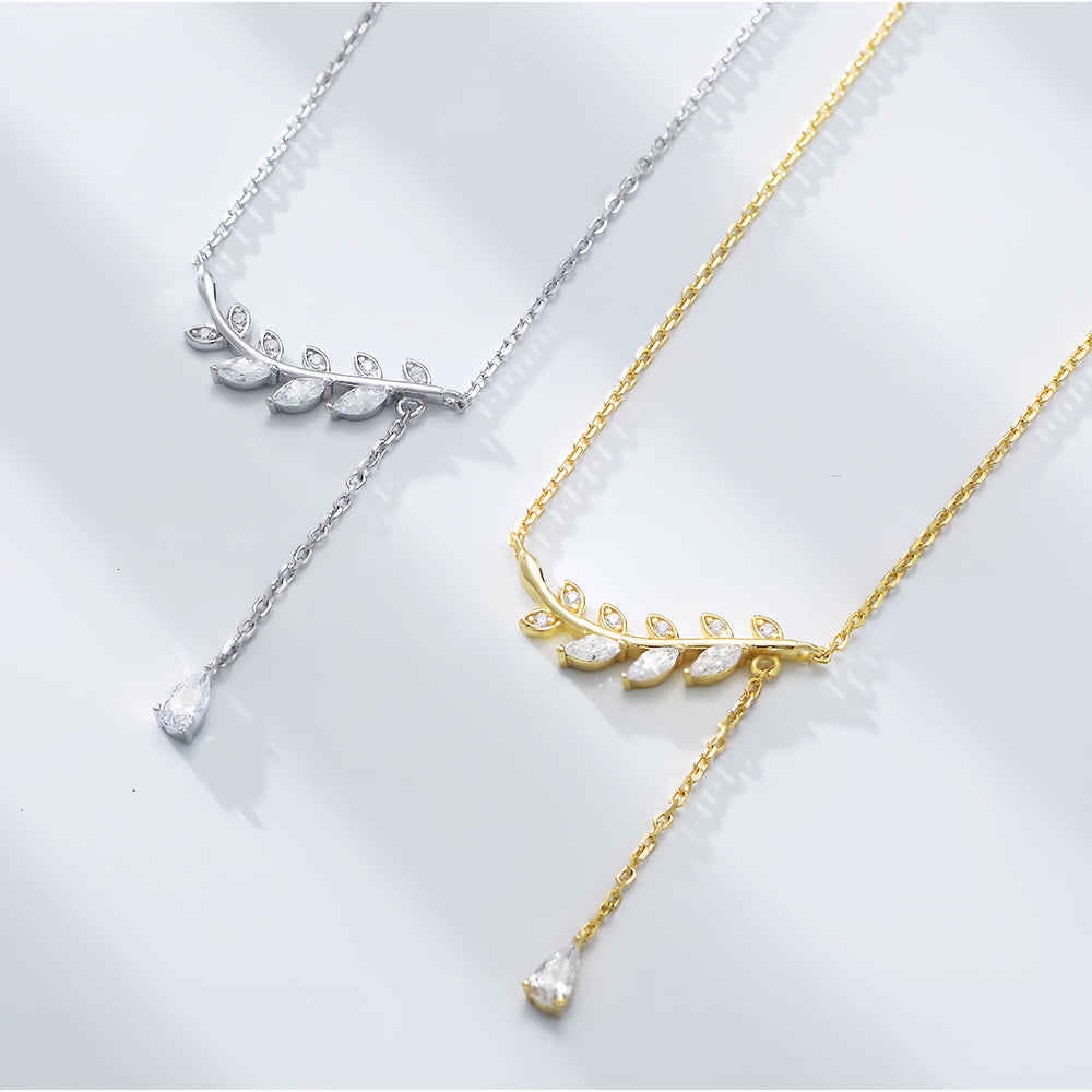 Ασημένιο κολιέ με ζιργκόν σε σχήμα φύλλου με διακοσμητική λεπτομέρεια το δάκρυ από ζιργκόν που πέφτει. Αναδεικνύει διακριτικά το λαιμό σας όλες τις ώρες της ημέρας με το μοναδικό σχέδιό του.