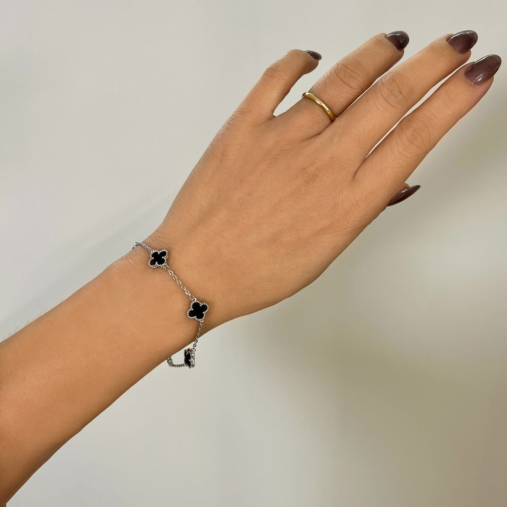 Βραχιόλι από ατσάλι επιχρυσωμένο με μαύρο όνυχα, σε ιδιαίτερο σχέδιο.