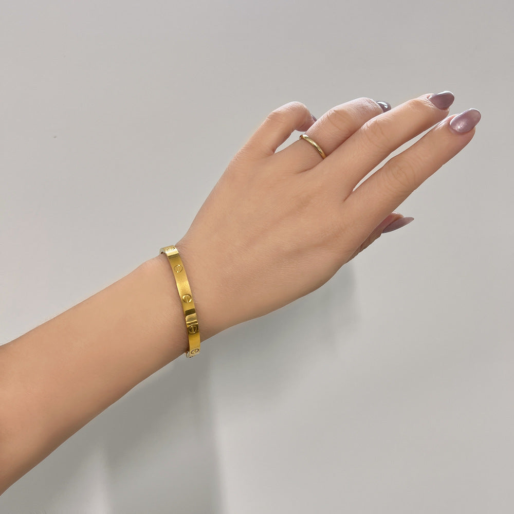 Βραχιόλι χειροπέδα από ατσάλι επιχρυσωμένο 18Κ. Σε ιδιαίτερο σχέδιο που θα σας κάνει να ξεχωρίζετε.