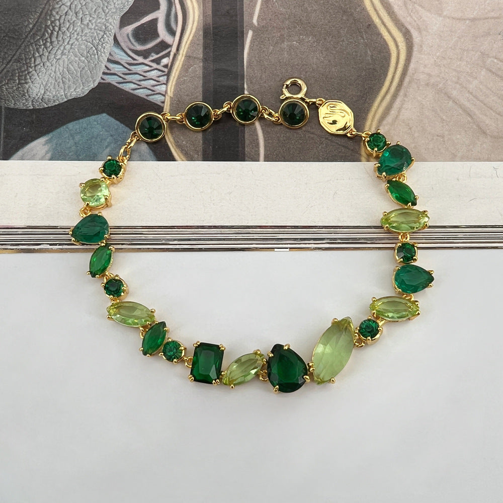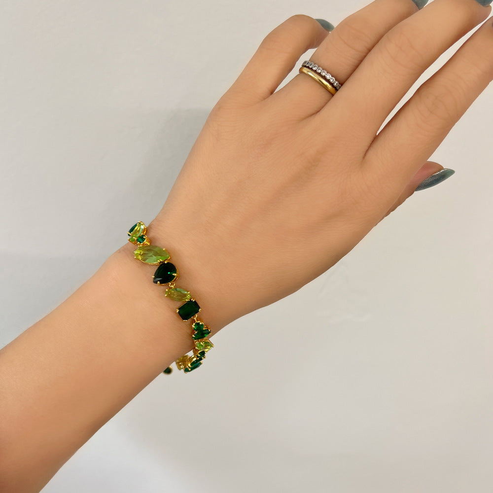 Βραχιόλι από ατσάλι 316L επιχρυσωμένο με κρυστάλλους στις αποχρώσεις του πράσινου σε εκπληκτικό σχέδιο που τραβάει τα βλέμματα.
