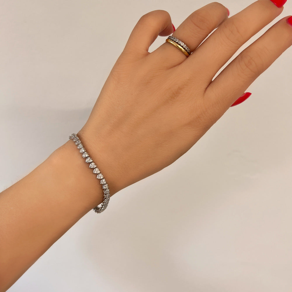 Βραχιόλι ριβιέρα από ατσάλι 316L επιχρυσωμένο με ζιργκόν σε σχήμα καρδιάς που εκτός απο λάμψη του προσδίδουν μια χαριτωμένη πινελία.