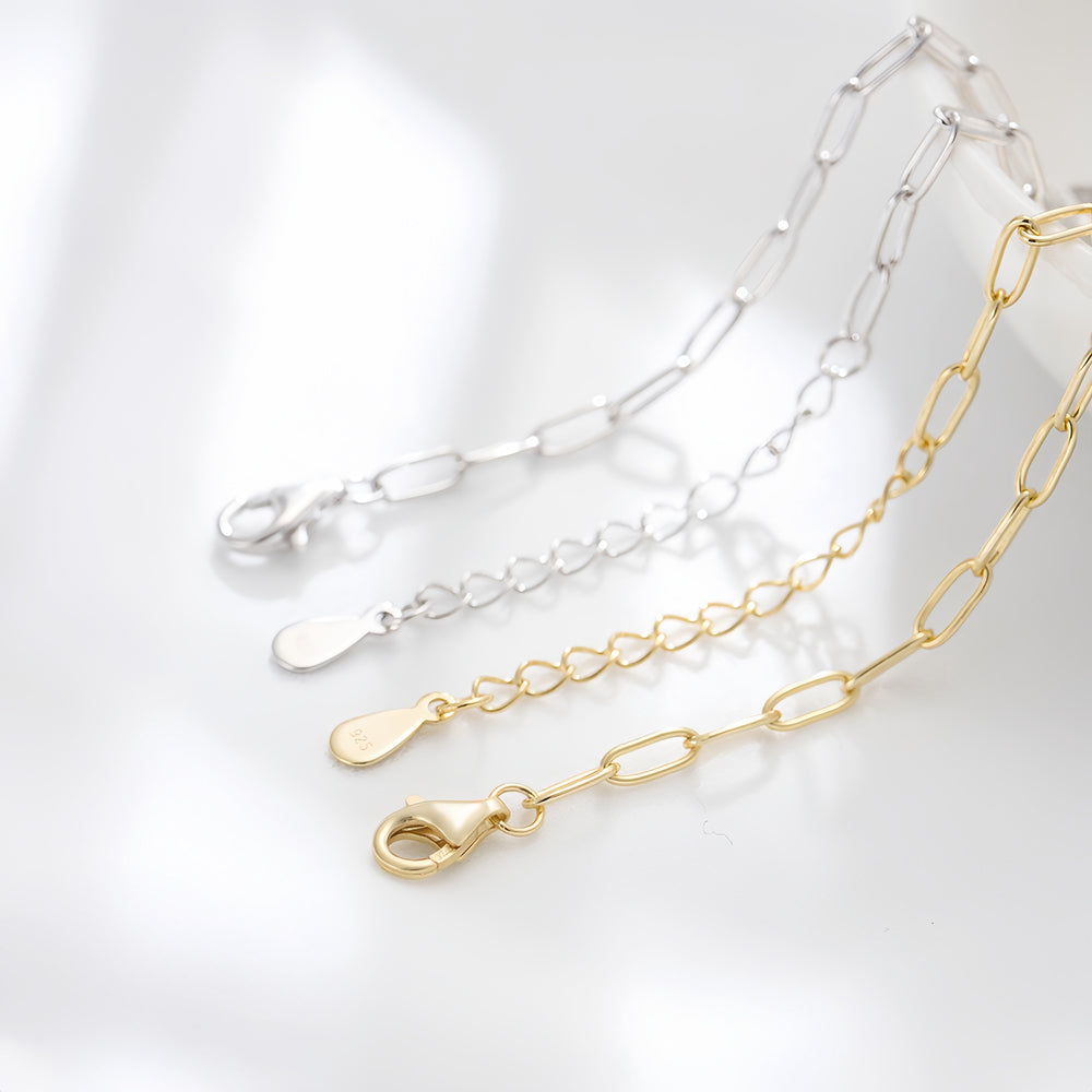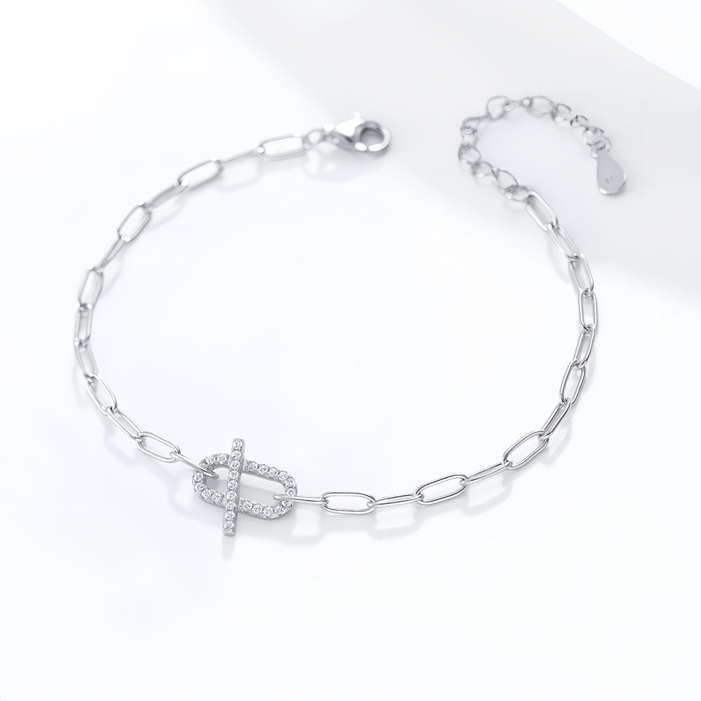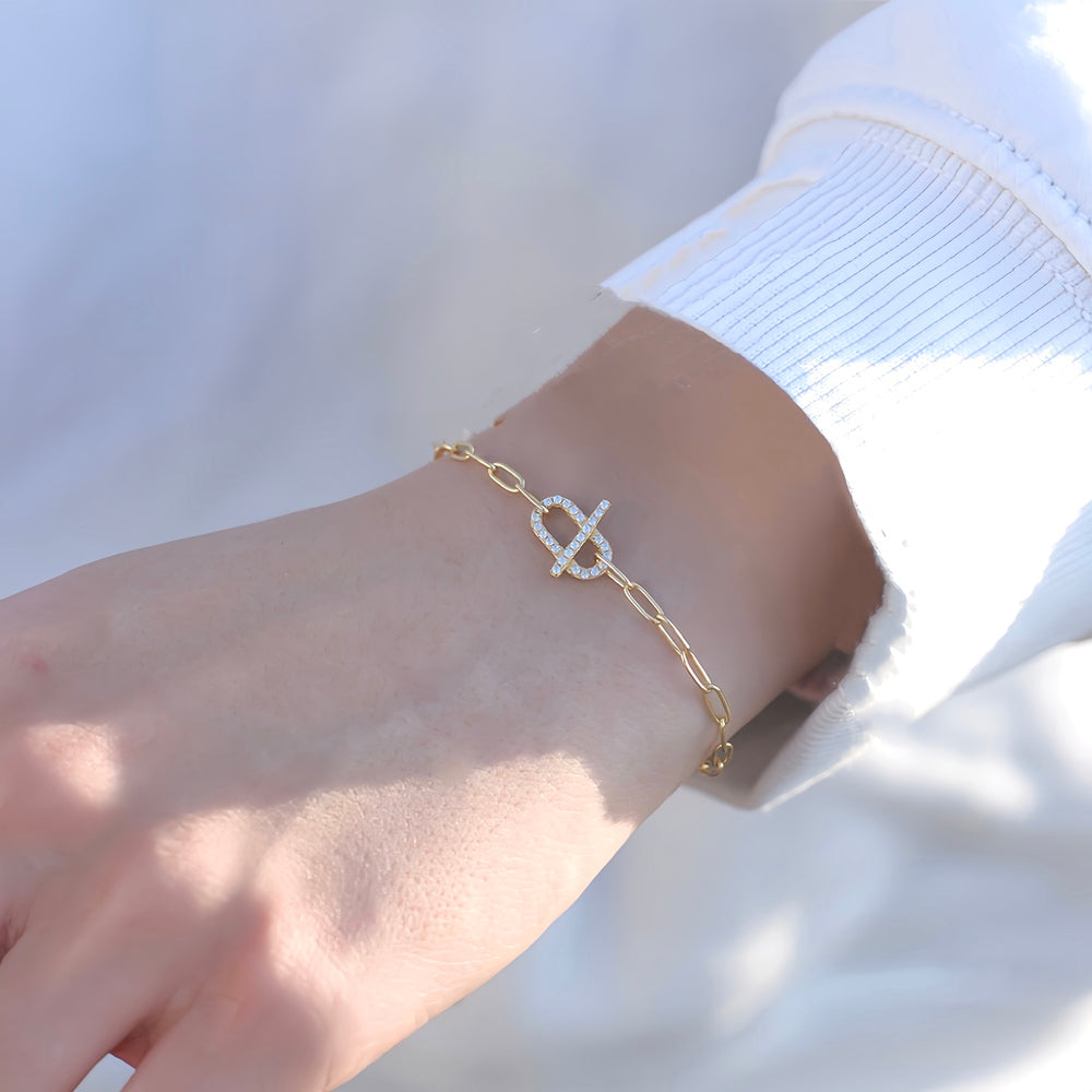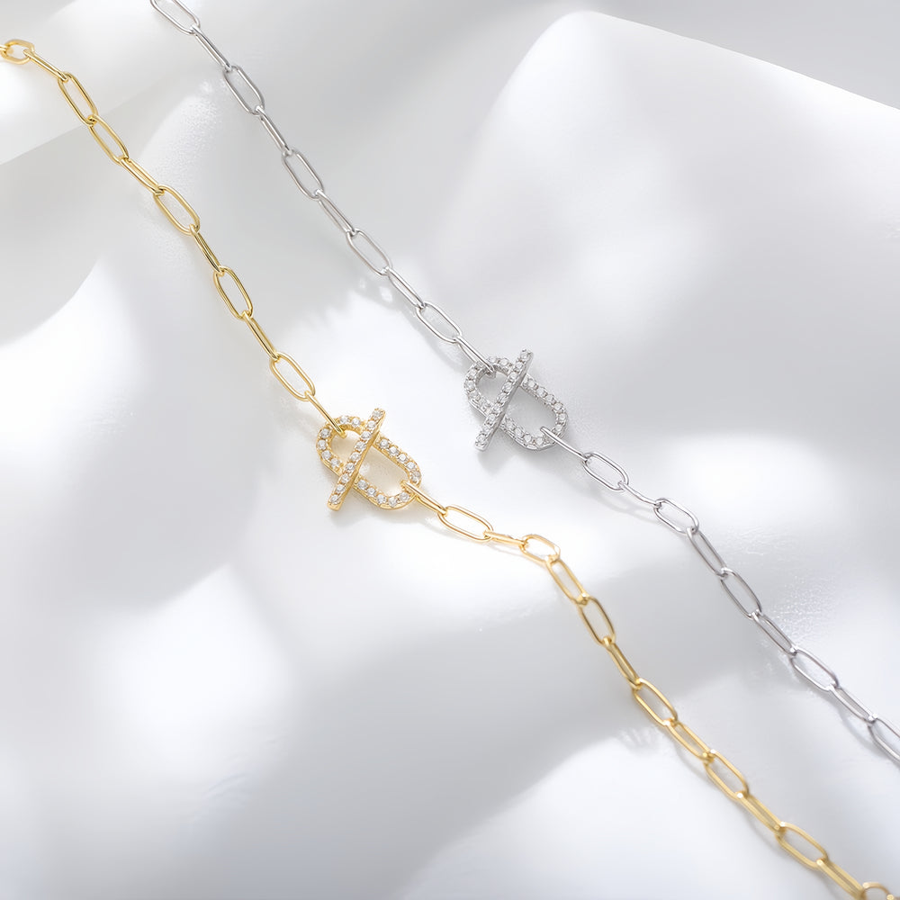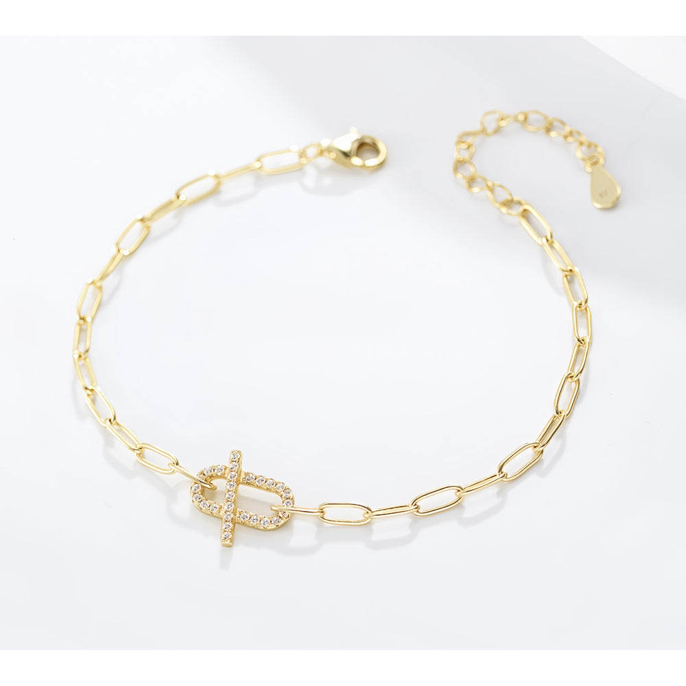 Ασημένιο βραχιόλι χεριού επιχρυσωμένο με ζιργκόν πέτρες και αλυσίδα σχέδιο paperclip που αναδεικνύει κάθε εμφάνιση.