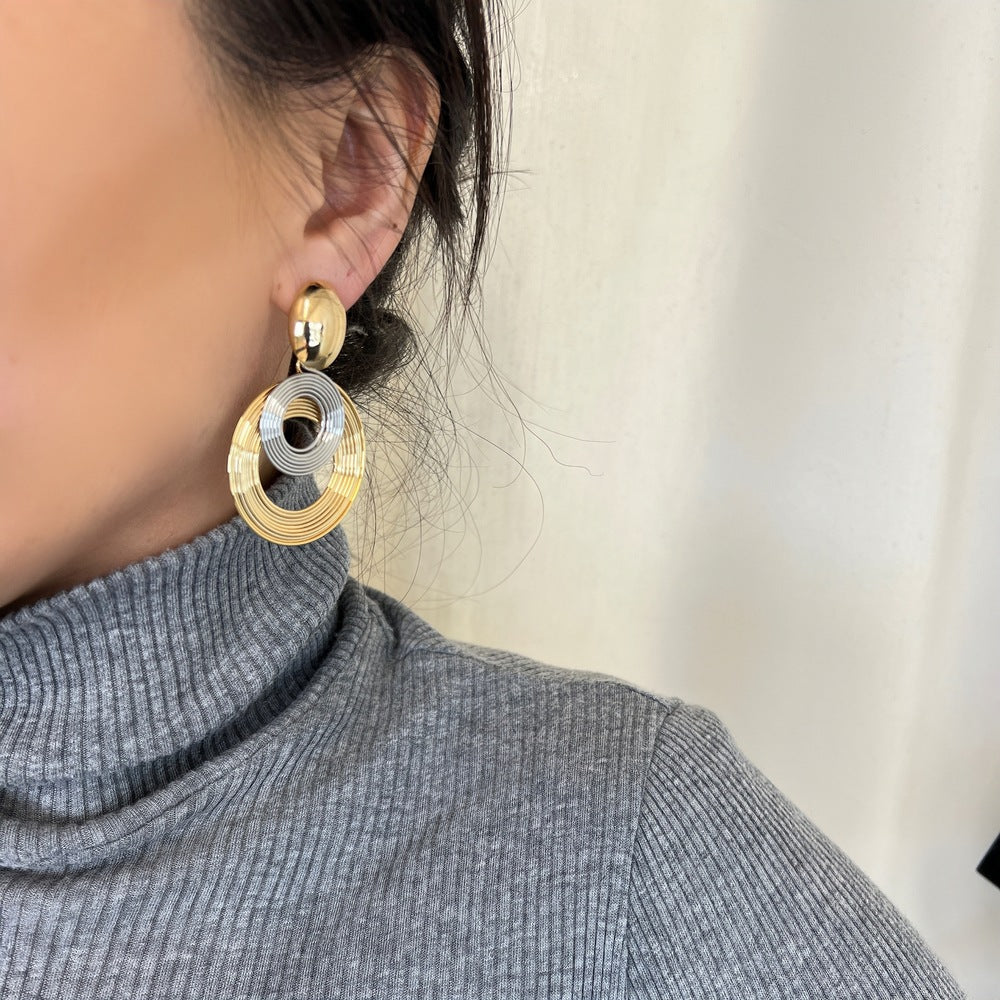 Ένα υπέροχο ζευγάρι κρεμαστά σκουλαρίκια κρίκοι. Το κούμπωμα του είναι από ατσάλι επιχρυσωμένο που δεν προκαλεί αλλεργίες.