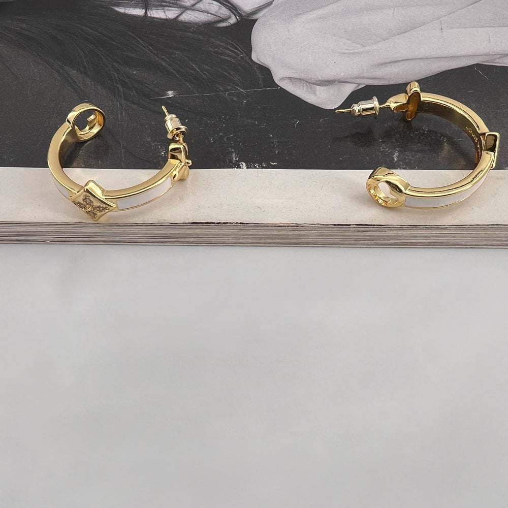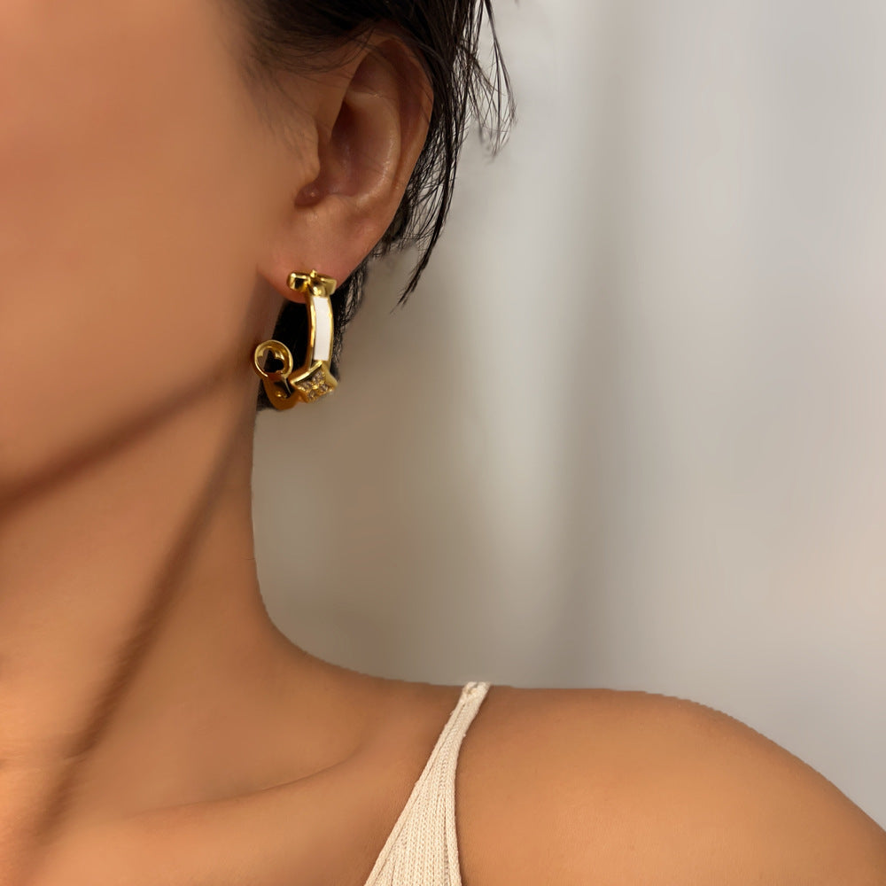 Εντυπωσιακοί κρίκοι σε λευκό χρώμα. Είναι κατασκευασμένοι από ατσάλι επιχρυσωμένο. Πανέμορφο ζευγάρι σκουλαρίκια που μπορεί να φορεθεί όλες τις ώρες και να αναδείξει αρμονικά το outfit σας.