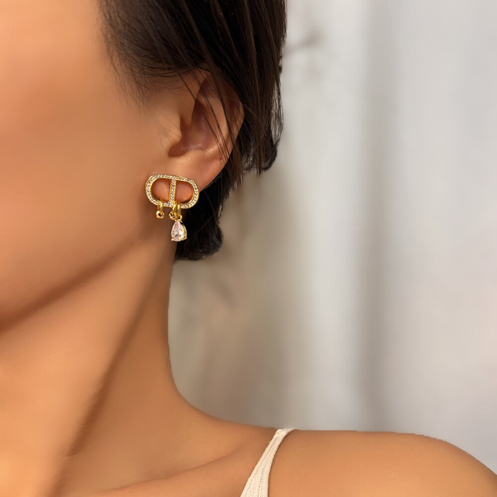 Κατασκευασμένο από ατσάλι επιχρυσωμένο. Ένα κομψό ζευγάρι σκουλαρίκια που θα αναδείξει το outfit σας.