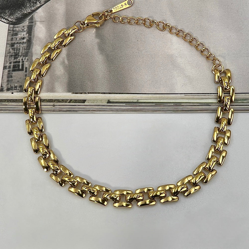 Βραχιόλι από ατσάλι επιχρυσωμένο σε περίτεχνο σχέδιο. Το σχεδιό του προσδίδει κομψότητα και σε συνδυασμό με το επιχρυσωμένο ατσάλι συμπληρώνουν ένα εκλεπτυσμένο αποτέλεσμα που μπορεί να φορεθεί με άνεση σε κάθε περίσταση.