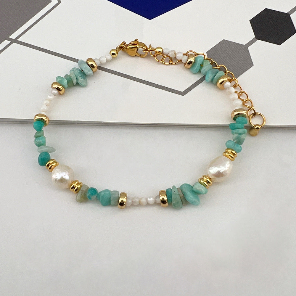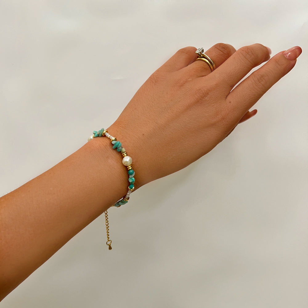 Βραχιόλι από ατσάλι 316L με μαργαριτάρια που του προσδίδουν κομψότητα. Είναι διαθέσιμο και σε κολιέ.