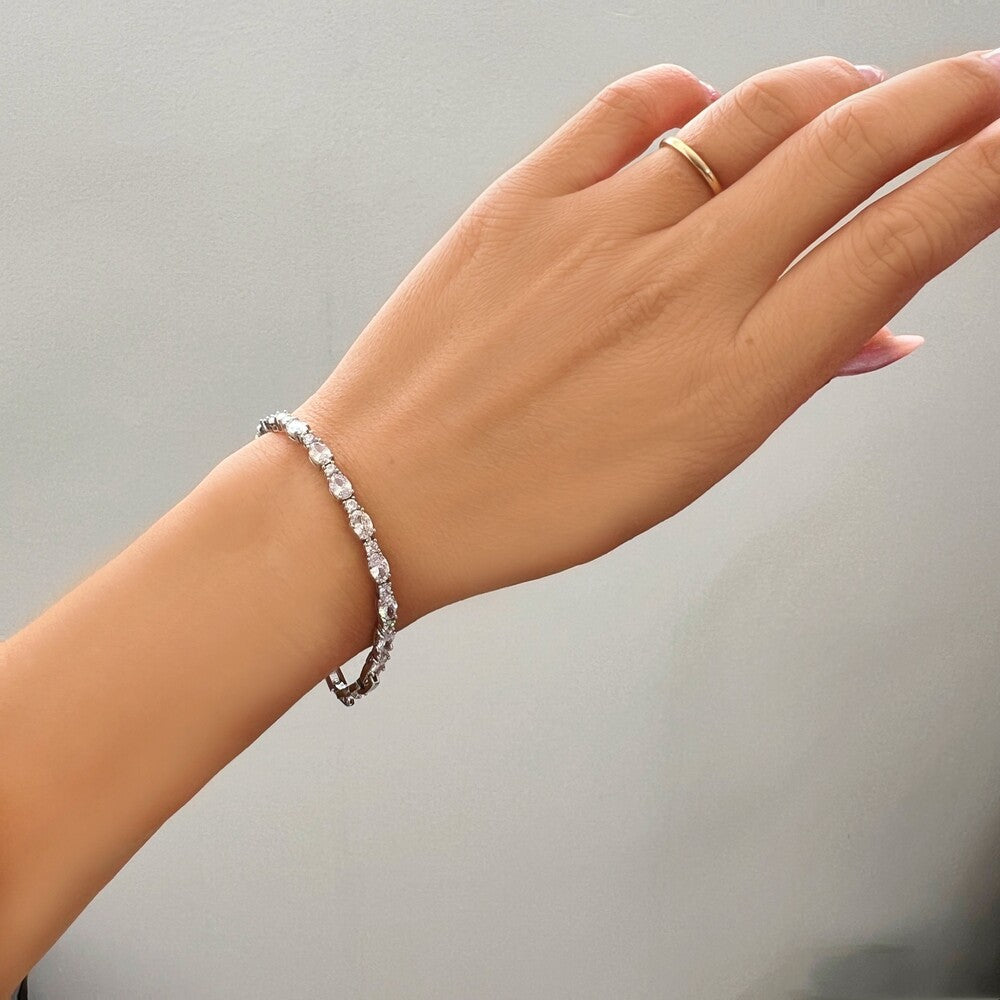 Βραχιόλι από ατσάλι 316L επιχρυσωμένο με ζιργκόν που του προσδίδουν λάμψη και κομψότητα.