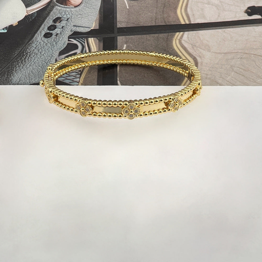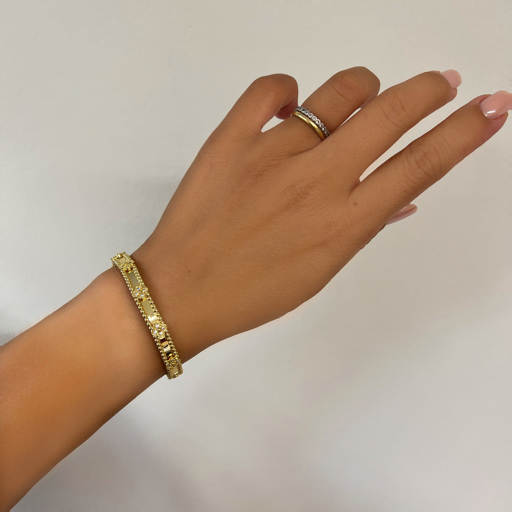 Χειροπέδα από ατσάλι επιχρυσωμένο 18Κ διακοσμημένη με ζιργκόν. Σε ιδιαίτερο σχέδιο που θα σας κάνει να ξεχωρίζετε.
