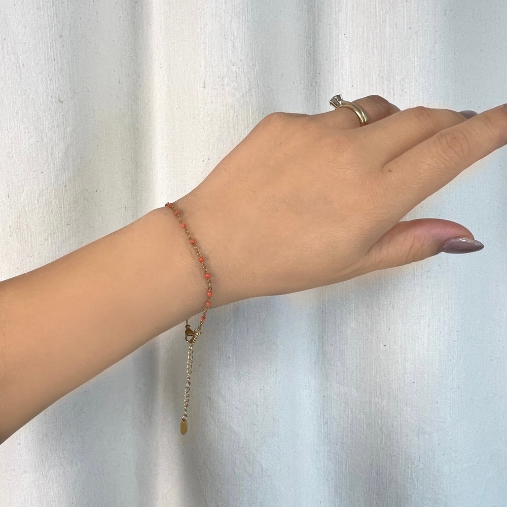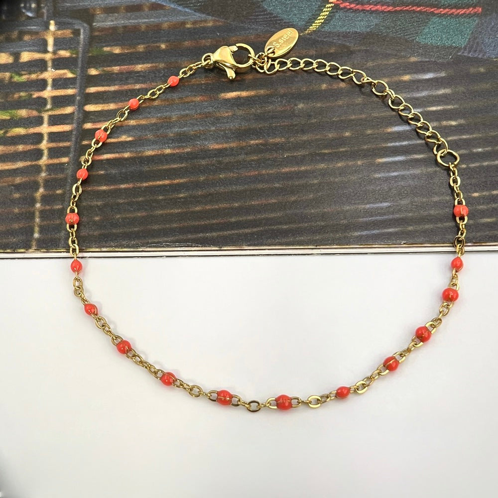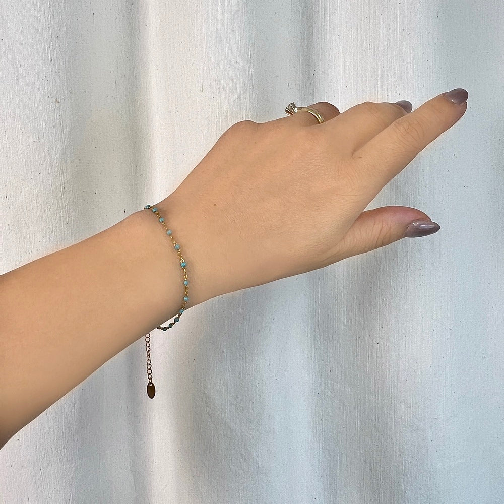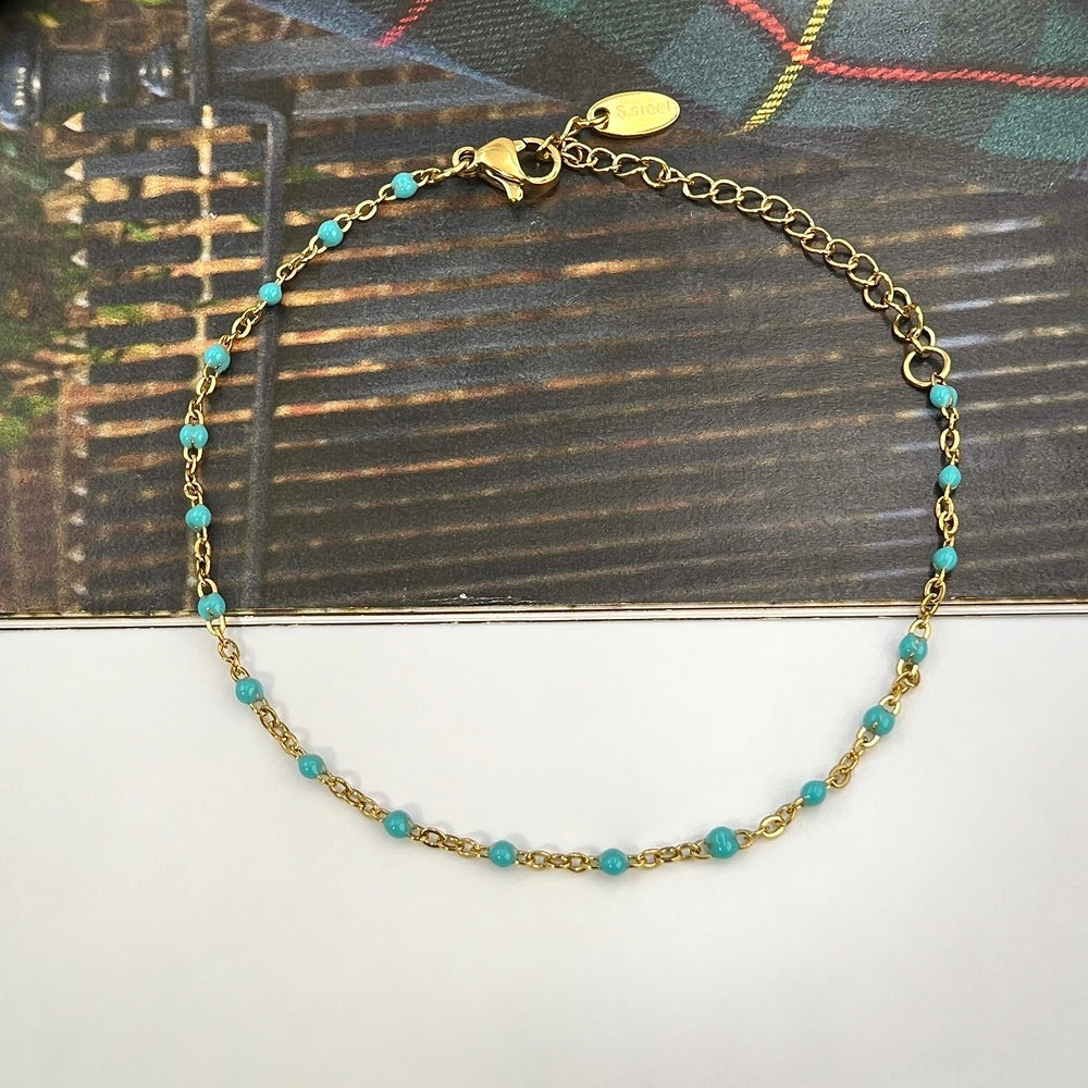 Βραχιόλι από ατσάλι επιχρυσωμένο με χάντρες. Απλό βραχιόλι σε δύο ξεχωριστά χρώματα, ιδανική επιλογή για τις καλοκαιρινές σας εμφανίσεις. Συνδυάζεται όμορφα με άλλα κοσμήματα.
