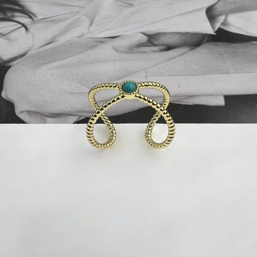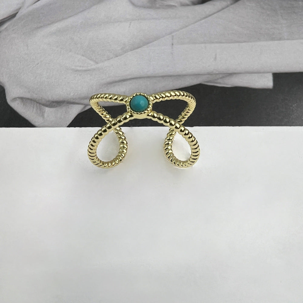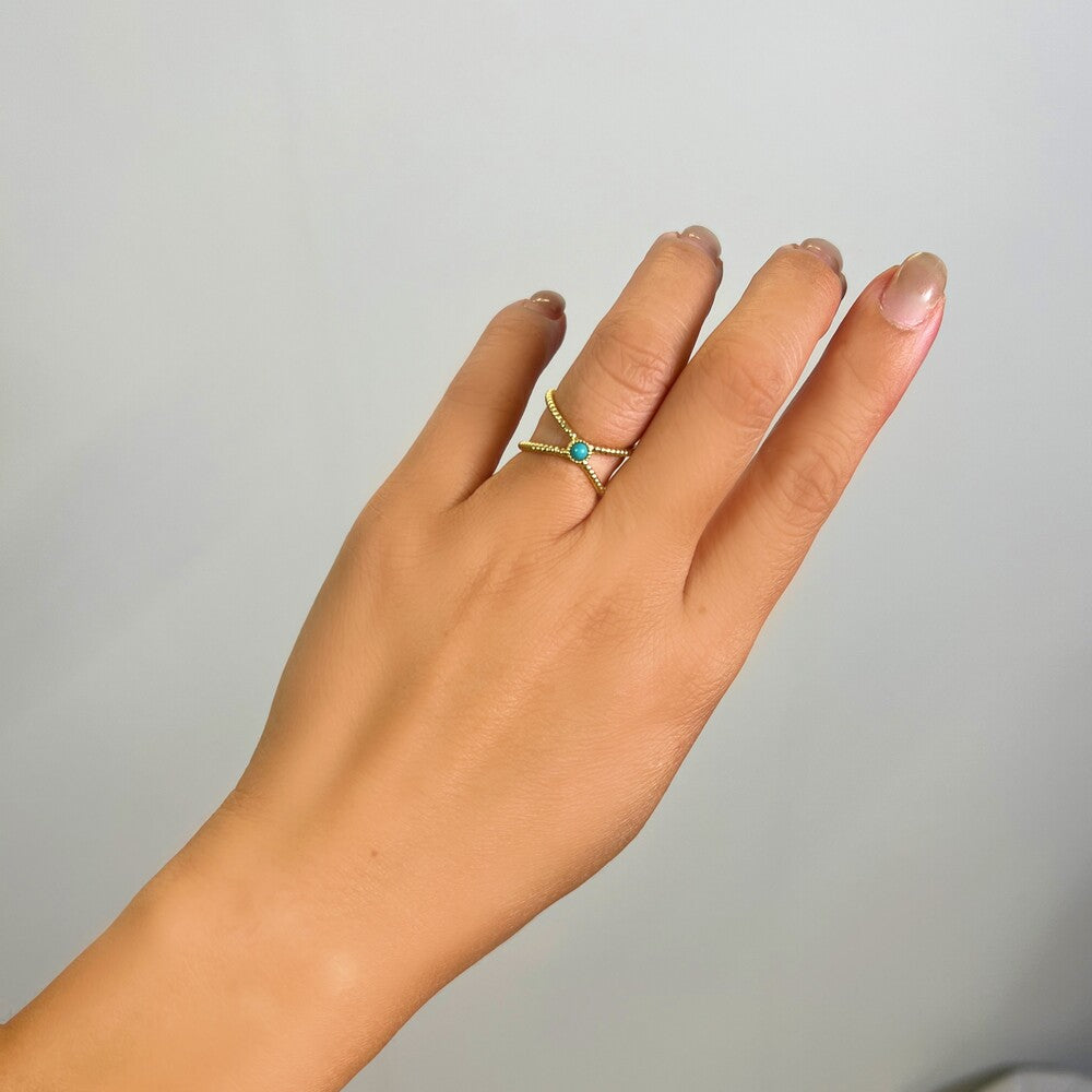 Το κλασσικό σχέδιο του δαχτυλιδιού και η τυρκουάζ πέτρα του το καθιστά ένα κόσμημα που κάθε γυναίκα θέλει στη κοσμηματοθήκη της. Ανακαλύψτε το απόλυτο κόσμημα, αυτό το δαχτυλίδι αποτελεί την τέλεια προσθήκη για να αναδείξετε το στυλ σας με μια νότα κομψότητας.