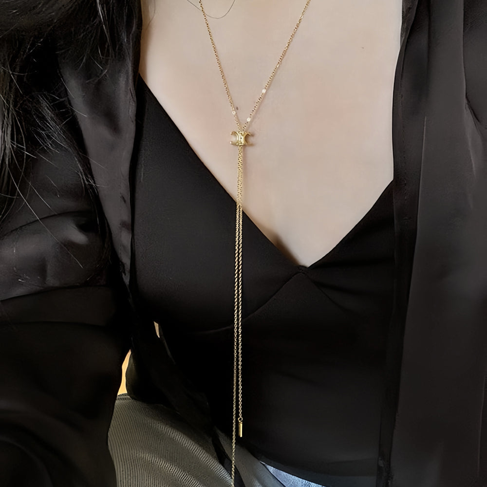 Ατσάλινο μακρύ κολιέ επιχρυσωμένο το οποίο θα αναδείξει το ντύσιμό σας.