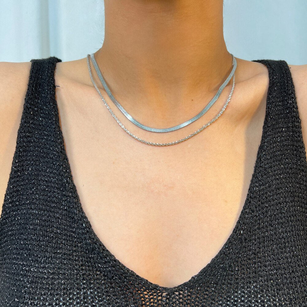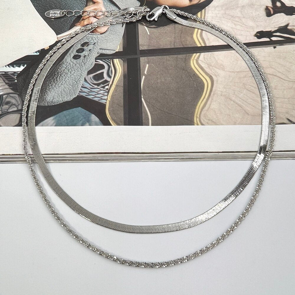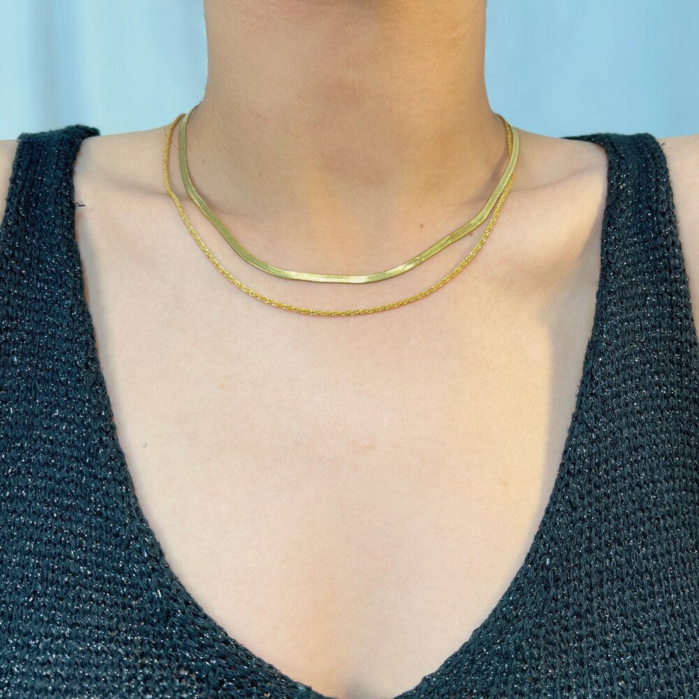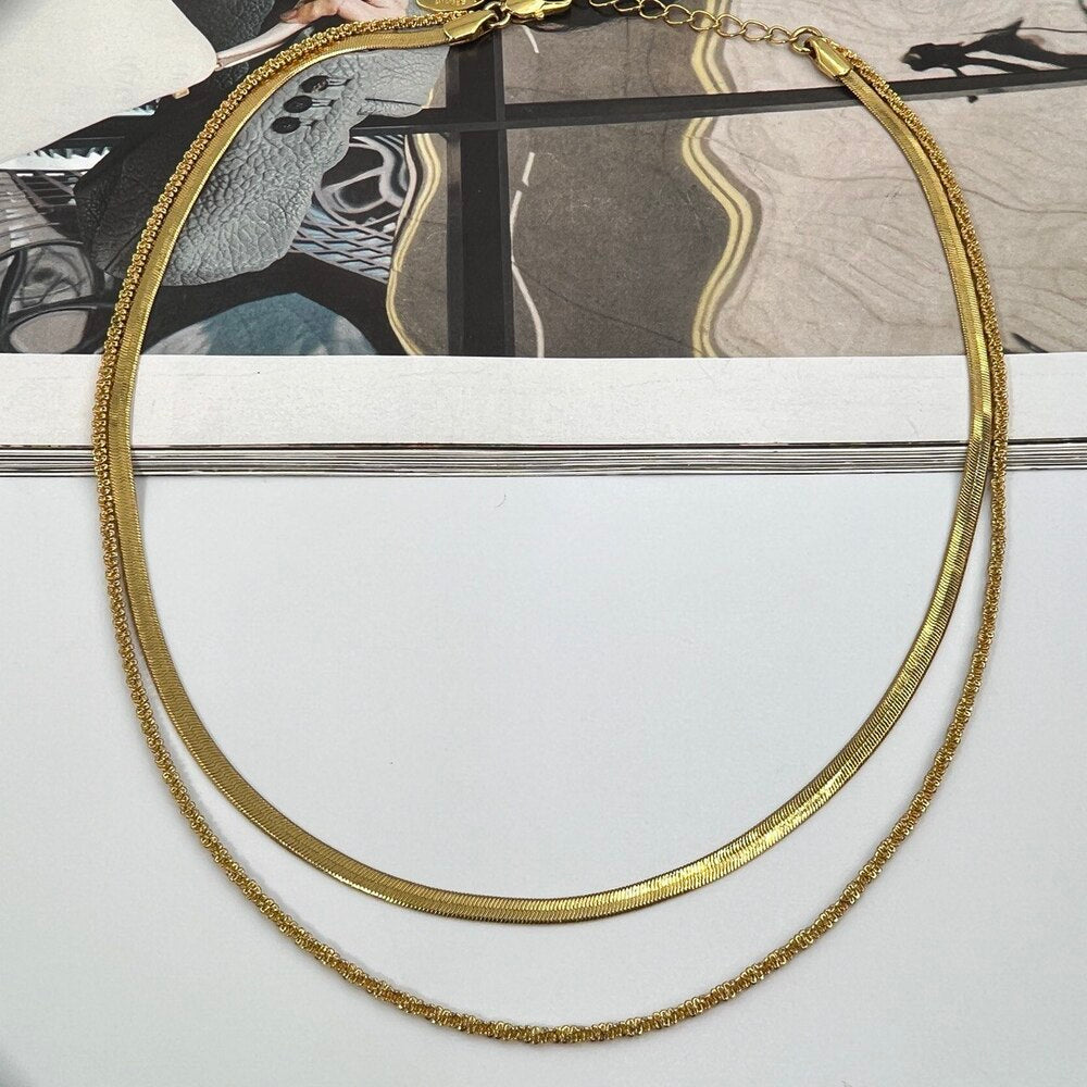 Ατσάλινο κολιέ επιχρυσωμένο, με δύο αλυσίδες που κουμπώνουν στο ίδιο κούμπωμα. Εξαιρετική επιλογή για να συνοδεύει τις εμφανίσεις σας, μπορεί άνετα να φορεθεί από το πρωί έως το βράδυ. Κατασκευασμένο από ατσάλι, το οποίο παρέχει ανθεκτικότητα και λάμψη, αυτό το κολιέ προσθέτει μια διακριτική και κομψή πινελιά στο στυλ σας.