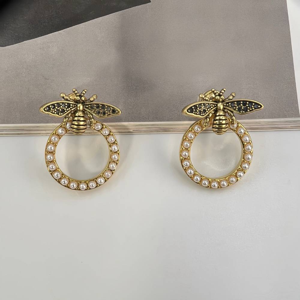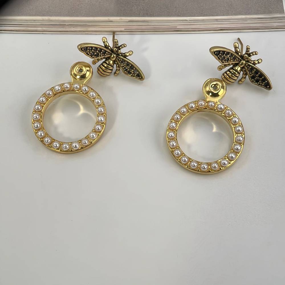 Υπέροχα σκουλαρίκια από ορείχαλκο επιχρυσωμένο σε σχέδιο μέλισσας, τα οποία μπορούν να φορεθούν με δυο τρόπους ,είτε μαζί με τον κρίκο με τα μαργαριτάρια ή μόνο την μέλισσα. Δυο σκουλαρίκια σε ένα!!