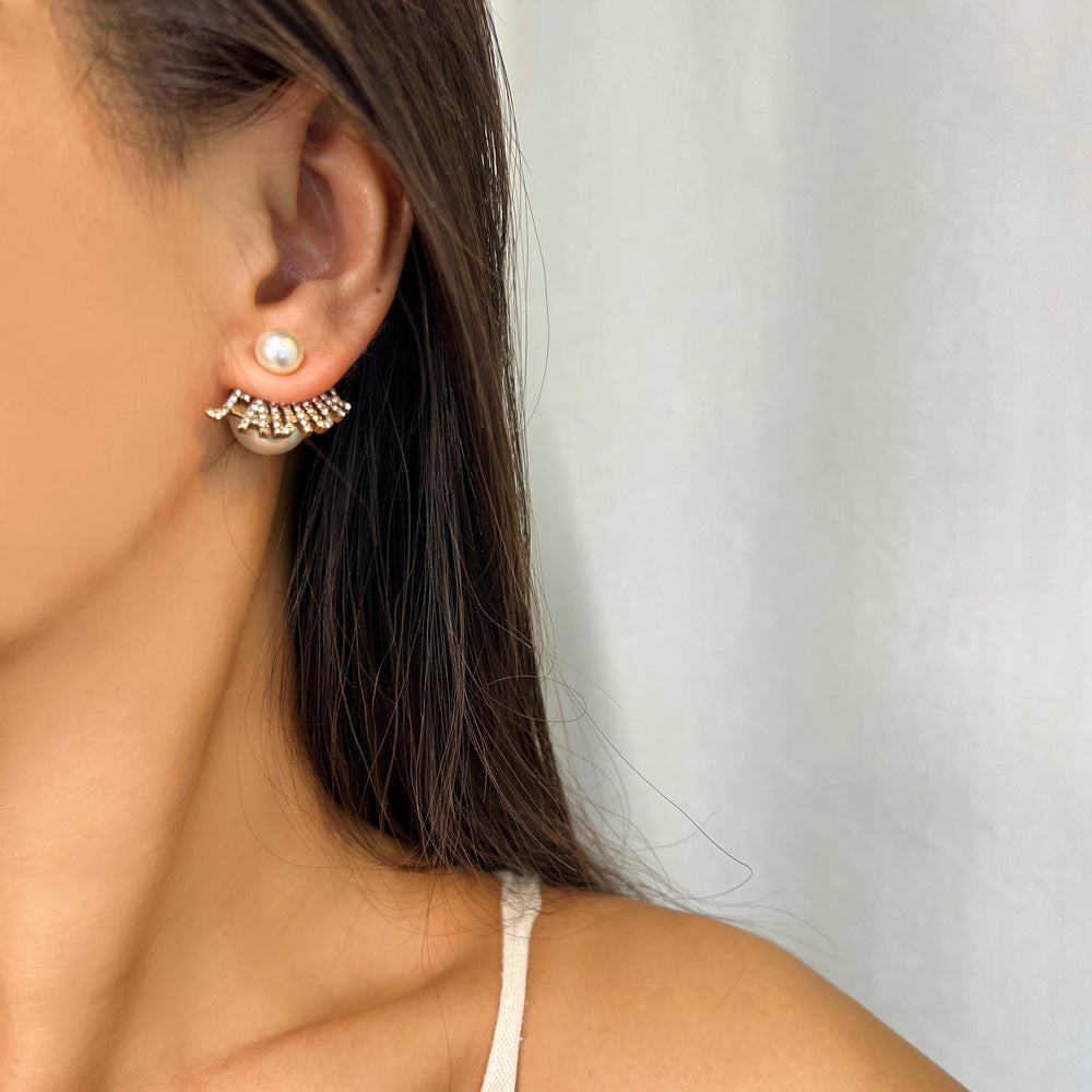 Ορειχάλκινα επιχρυσωμένα 18Κ, σκουλαρίκια με ιδιαίτερο στυλ, που αναβαθμίζουν κάθε εμφάνιση με τη λάμψη των ζιργκόν και την κομψότητα των μαργαριταριών.